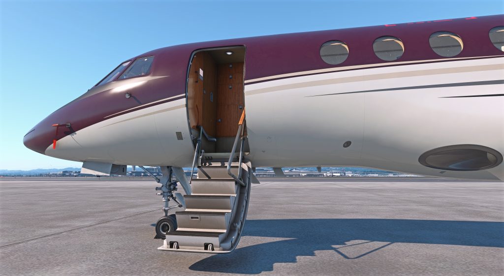 Si parla brevemente anche dell’abitacolo. Tutte le texture sono state aggiunte, corrispondenti a quelle che si trovano su un vero Falcon 50 per un maggiore realismo. Questo viene mostrato in un’immagine condivisa da Contrail che mostra l’abitacolo con gli strumenti e l’avionica funzionanti.